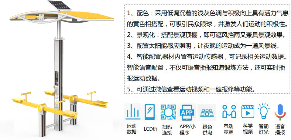 KS娱乐体育全民健身产品涵盖健身路径、运动场馆、篮乒气羽排等产品,分为多个系列,先进的制造工艺、严苛的质量检测,确保产品性能优良、品质安全可靠,让运动简单科学。并将全民健身器材(户外路径器材、体育场馆等产品)进行智能化升级和互联,实现全人群覆盖、全场景智能,让运动赞美生活。