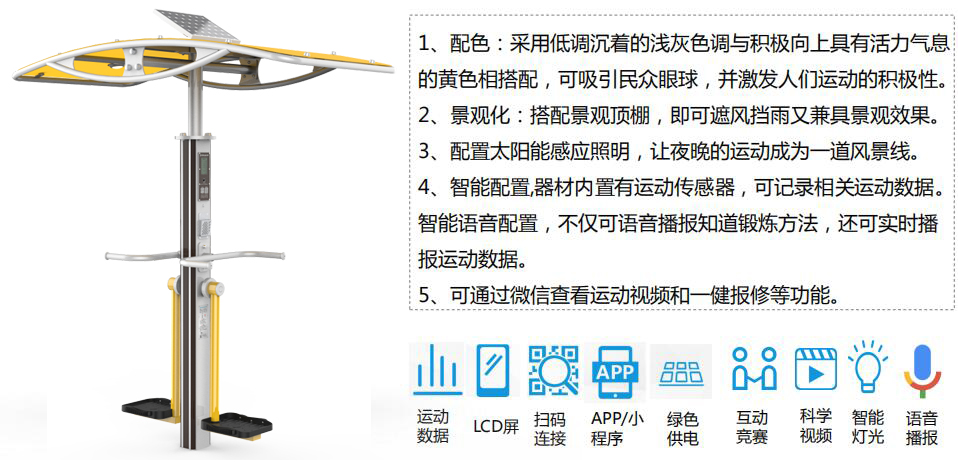 KS娱乐体育全民健身产品涵盖健身路径、运动场馆、篮乒气羽排等产品,分为多个系列,先进的制造工艺、严苛的质量检测,确保产品性能优良、品质安全可靠,让运动简单科学。并将全民健身器材(户外路径器材、体育场馆等产品)进行智能化升级和互联,实现全人群覆盖、全场景智能,让运动赞美生活。