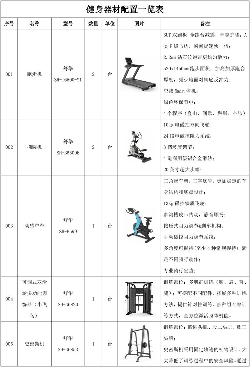 1.KS娱乐体育X5智能跑步机SH-T6500*2台-SUT双跑板 全跑台减震,卓越护膝;A类F级马达,瞬间提速快一倍;2.2mm钻石纹跑带更均匀散力;520x1450mm跑步面积,加高加厚跑台厚度,减少地面对脚底反冲力;空载5min停机;绿色环保节电;4个程序(登山、间歇、燃脂、心肺)。