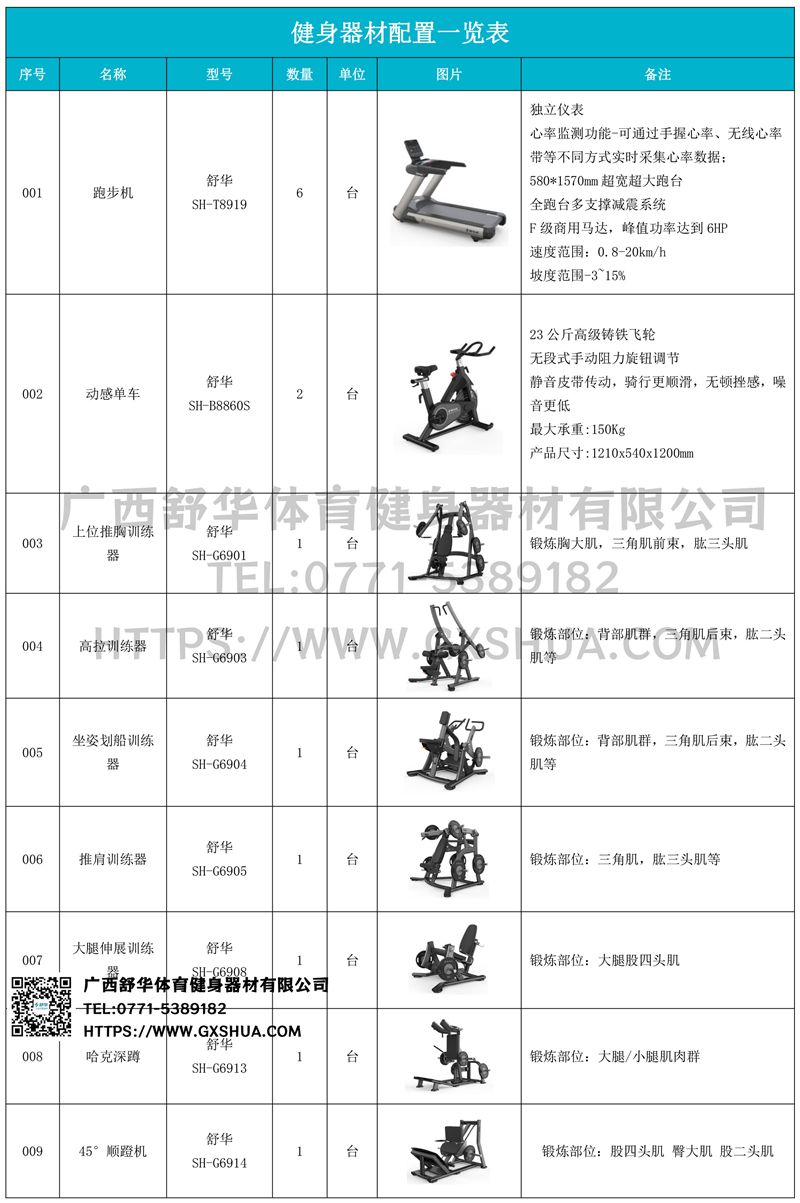 1.KS娱乐体育V9跑步机SH-T8919*6台-580*1570mm超宽超大跑台-跑感舒适,跑台整体安全稳定;全跑台多支撑减震平台,保证跑台超强支撑力,达到180kg支撑,满足专业健身房需求。F级商用马达-超强马达,AC 3.0HP 交流,峰值功率达到6HP,F级商用品质。速度范围达到0.8-20km/h;V9跑步机可实现跑台扬升功能,坡度范围-3~15%,满足客户不同的锻炼需求。