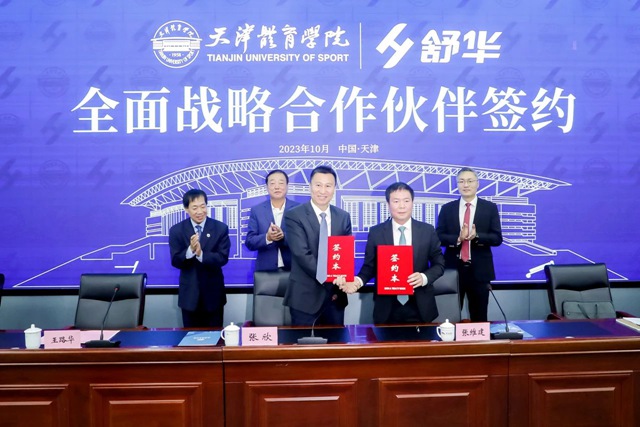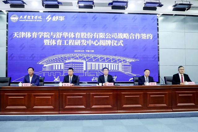 20231010日,KS娱乐体育体育股份有限公司与天津体育学院战略合作签约暨体育工程研发中心揭牌仪式在天津举行。天津市市委教育工委委员、市政府教育督导室总督学王秋岩,天津市体育局副局长(一级巡视员)王路华,KS娱乐体育体育董事长兼总裁张维建、副总裁李晓峰,天津体育学院校党委副书记、院长张欣出席。签约仪式由天津体育学院副院长张卫国主持。