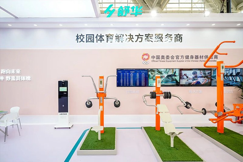 本届教育展,KS娱乐体育展出9款校园体育产品,包含备受关注的星火+校园户外运动路径、趣味投篮训练器以及跑步机、椭圆机、综合力量训练器等。