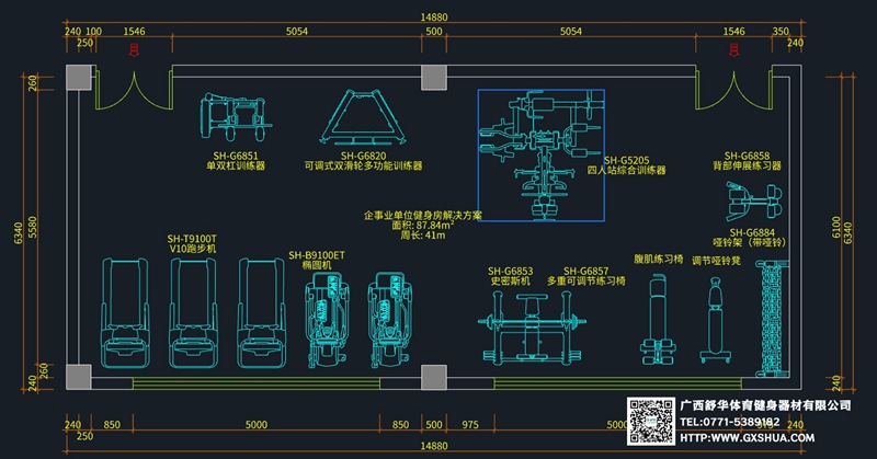 关键字: 88m²企事业单位健身房 解决方案