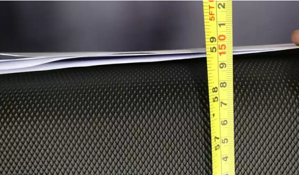 实测跑带的厚度为2.25mm,即便用美工刀不断割滑,也毫无划痕,说明KS娱乐体育这款跑步机跑带还是相对比较坚固度的,不会很容易断裂和磨平。